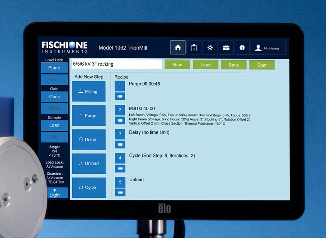 Параметры травления вводятся через 10-дюймовый сенсорный экран, который можно физически установить на предпочтительной высоте и под удобным углом обзора. Через сенсорный экран можно управлять широким спектром параметров инструмента, таких как энергия ионного пучка, угол травления, движение образца, позиционирование образца и завершение процесса.