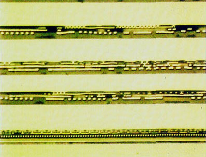 Оптическое изображение образца для XTEM, состоящего из нескольких отдельных секций микроэлектронного материала.